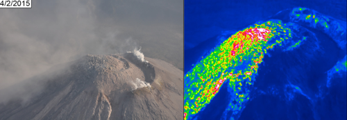 研究者監(jiān)測了始于2013年1月的火山穹頂,當時熔巖噴發(fā)形成了一個150毫米寬和50毫米深的火山口底部(同月發(fā)生了幾次大爆炸)。 新的圓頂繼續(xù)充滿了這個火山口,到2013年4月,溢流形成了幾個熔巖流,并最終充滿了整個山頂火山口(寬約300 m)。 2015年7月10日至11日,幾次局部坍塌(伴隨火山活動增加)導致穹頂破壞; 這些坍塌產(chǎn)生的火山碎屑密度流沿著蒙特格蘭德的山溝傳播了約10.6公里,威脅了幾家牧場和克薩里亞鎮(zhèn)(2010年人口8611)。 自1913年以來,該火山噴發(fā)是沃爾坎德科利馬州最大的火山噴發(fā)。