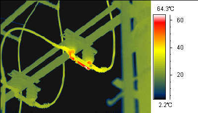 紅外熱像儀彩虹效果,看電線接頭發(fā)熱